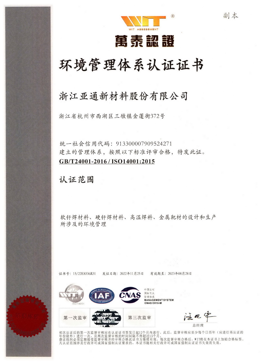 浙江亞通新材料股份有限公司是世界500強企業杭鋼集團投資設立的高新技術企業,位于杭州市西湖區紫金港科技城,專業從事高中低溫全系列釬焊材料和金屬粉體的研發生產和銷售,是國內焊接材料行業的核心企業之一,多項國家標準的主要起草單位。公司在中國電子材料行業協會、國家標準化技術委員會、中國焊接協會等專業機構擔任領導職務,在行業內具有廣泛影響力。