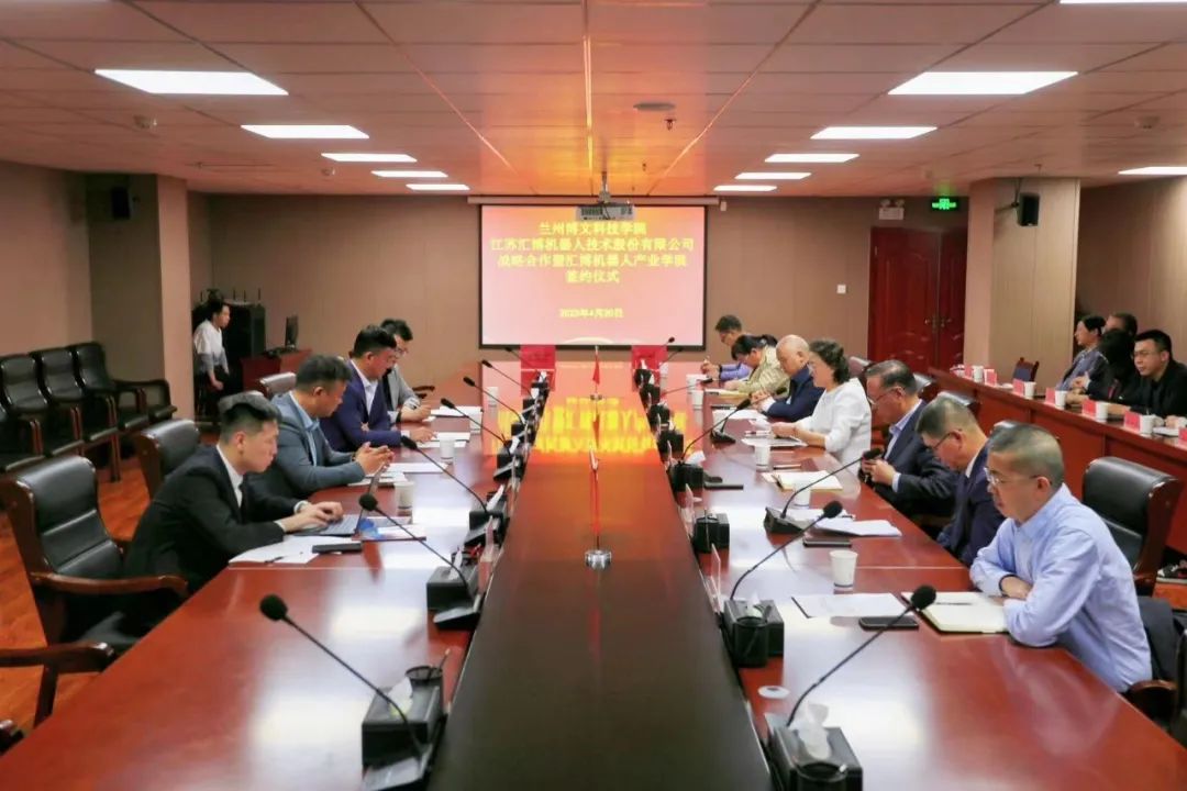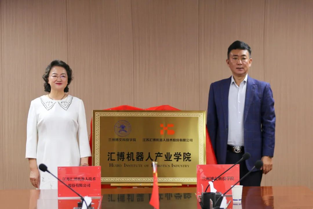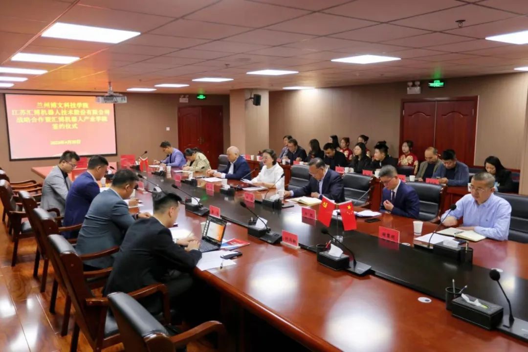 儀式上,江蘇匯博機器人技術(shù)股份有限公司與蘭州博文科技學院簽訂“匯博機器人產(chǎn)業(yè)學院校企合作協(xié)議書”。