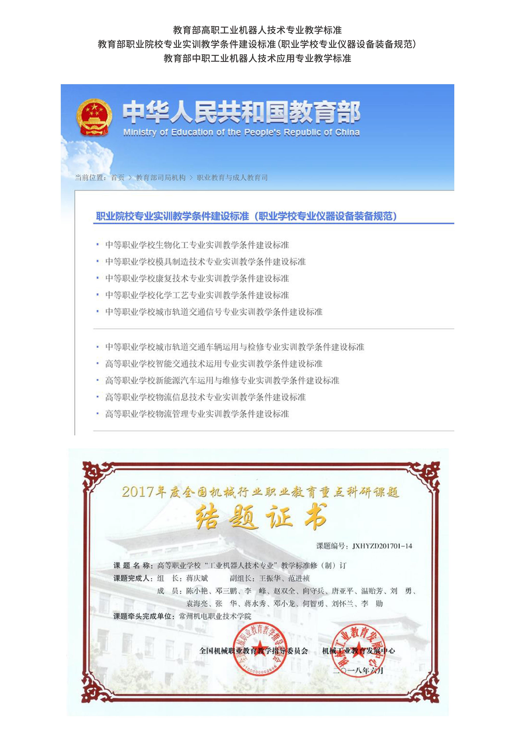 教育部工業機器人領域系列標準核心研制單位